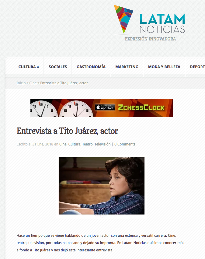 Hace un tiempo que se viene hablando de un joven actor con una extensa y versátil carrera. Cine, teatro, televisión, por todas ha pasado y dejado su impronta. En Latam Noticias quisimos conocer más a fondo a Tito Juárez y nos dejó esta interesante entrevista.